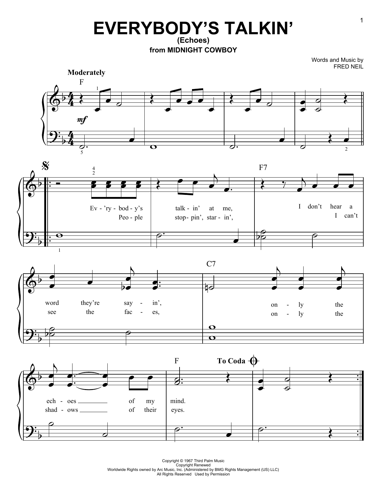 Download or print Harry Nilsson Everybody's Talkin' (Echoes) sheet music, chords and digital score arranged for Lead Sheet / Fake Book. This Standards score includes 1 page(s).
