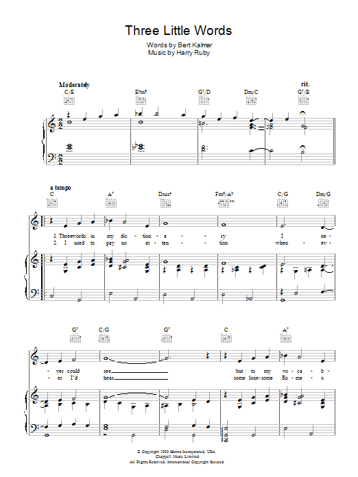 Download or print Harry Ruby Three Little Words sheet music, chords and digital score arranged for Easy Piano. This Jazz score includes 3 page(s).