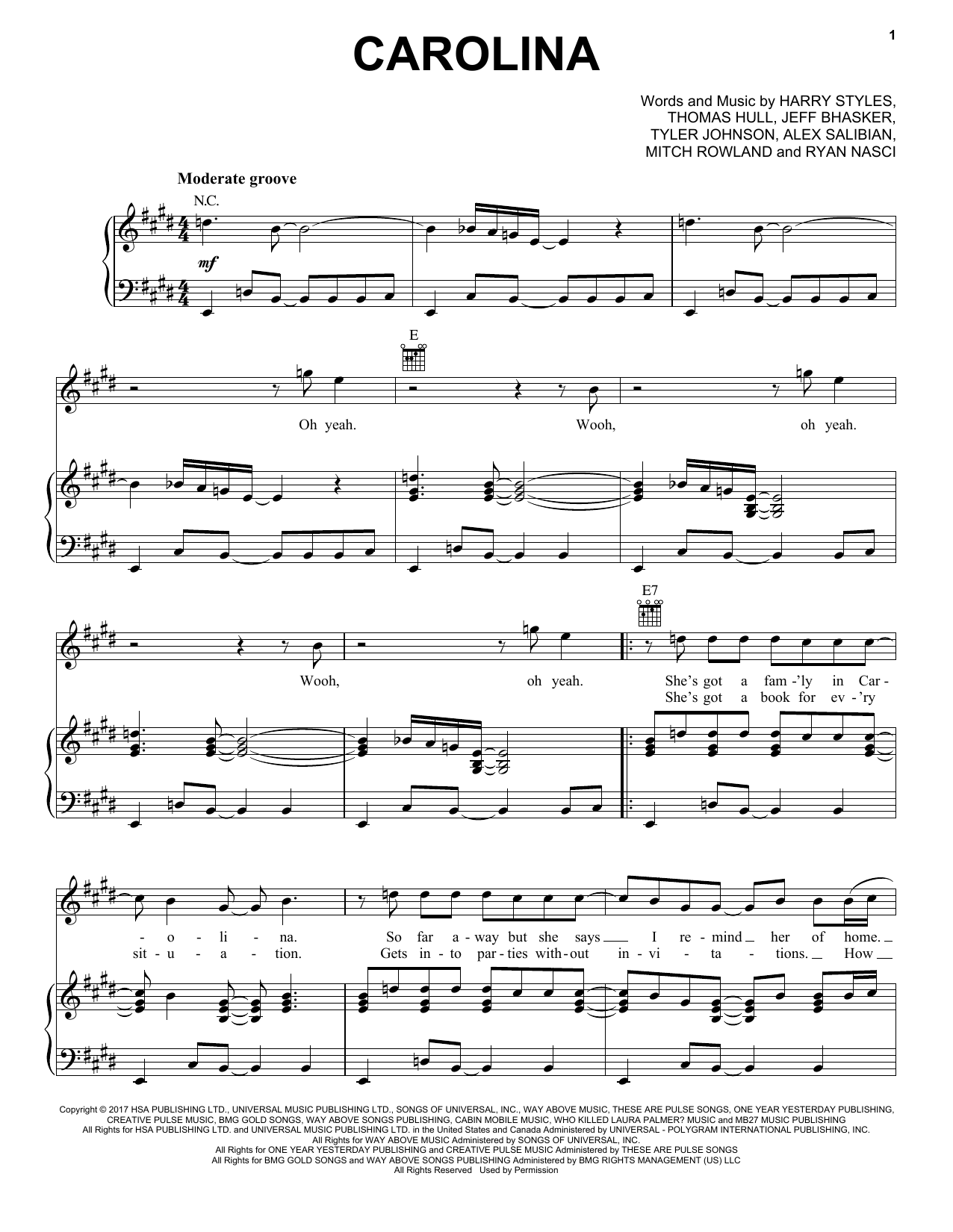 Download or print Harry Styles Carolina sheet music, chords and digital score arranged for Super Easy Piano. This Pop score includes 2 page(s).