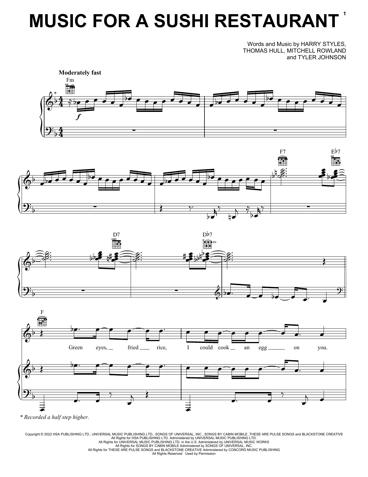 Download or print Harry Styles Music For A Sushi Restaurant sheet music, chords and digital score arranged for Piano, Vocal & Guitar Chords (Right-Hand Melody). This Pop score includes 7 page(s).