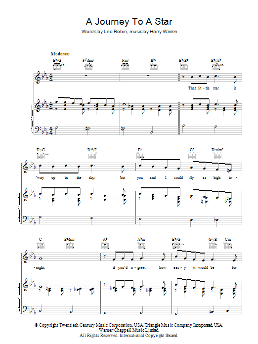Download or print Harry Warren A Journey To A Star sheet music, chords and digital score arranged for Piano, Vocal & Guitar Chords. This Standards score includes 4 page(s).