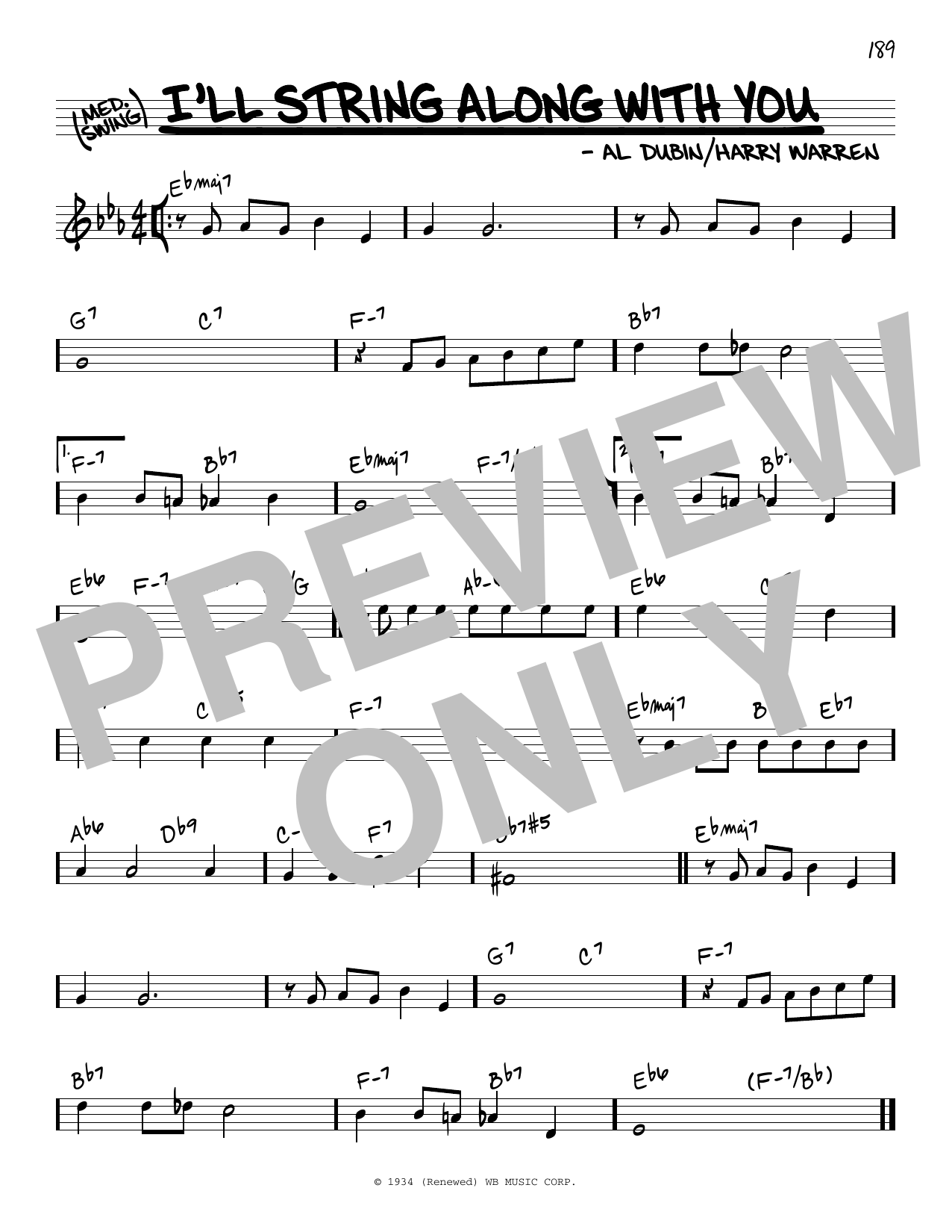 Download or print Harry Warren and Al Dubin I'll String Along With You sheet music, chords and digital score arranged for Real Book – Melody & Chords. This Jazz score includes 1 page(s).