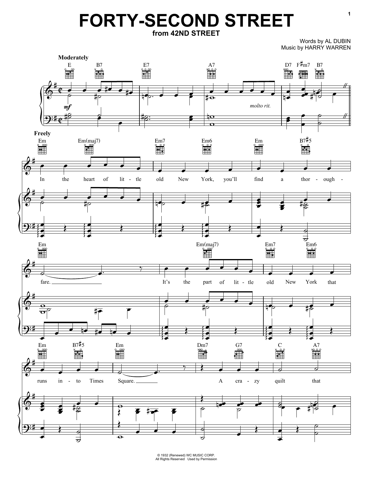 Download or print Harry Warren Forty-Second Street sheet music, chords and digital score arranged for Piano, Vocal & Guitar Chords (Right-Hand Melody). This Standards score includes 4 page(s).