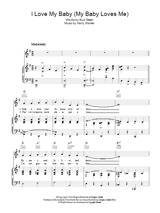 Download or print Harry Warren I Love My Baby (My Baby Loves Me) sheet music, chords and digital score arranged for Piano, Vocal & Guitar Chords. This Standards score includes 5 page(s).