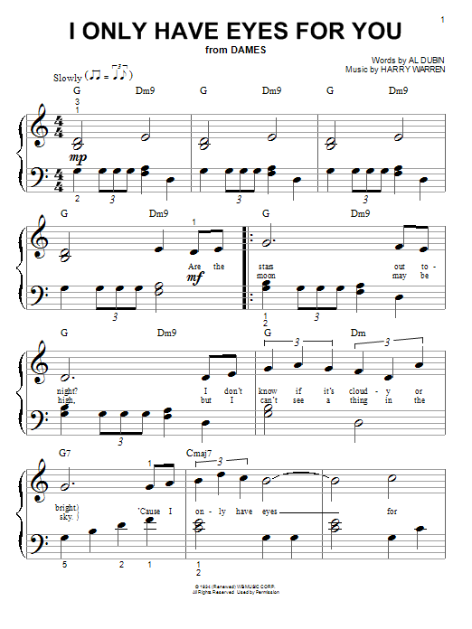 Download or print Harry Warren I Only Have Eyes For You sheet music, chords and digital score arranged for Lead Sheet / Fake Book. This Love score includes 1 page(s).