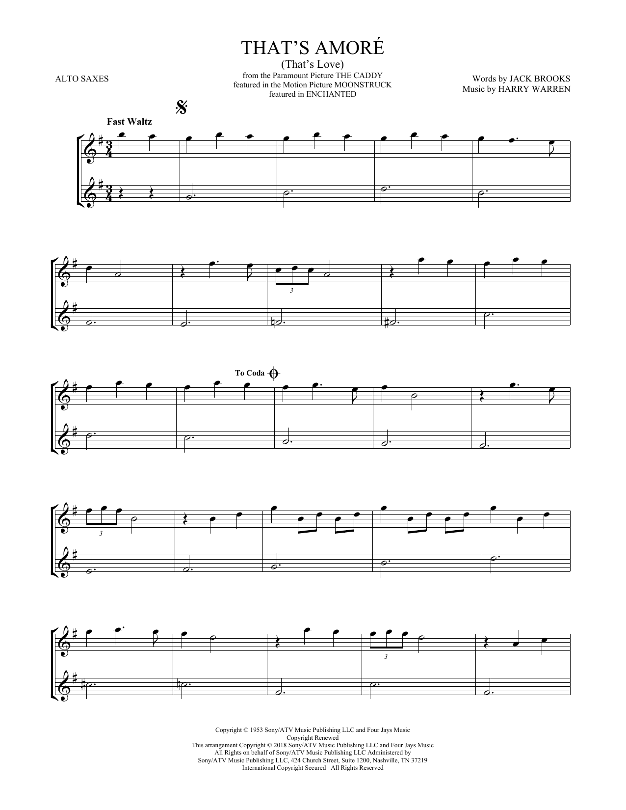 Download or print Dean Martin That's Amore (That's Love) (arr. Mark Phillips) sheet music, chords and digital score arranged for Alto Sax Duet. This Pop score includes 2 page(s).