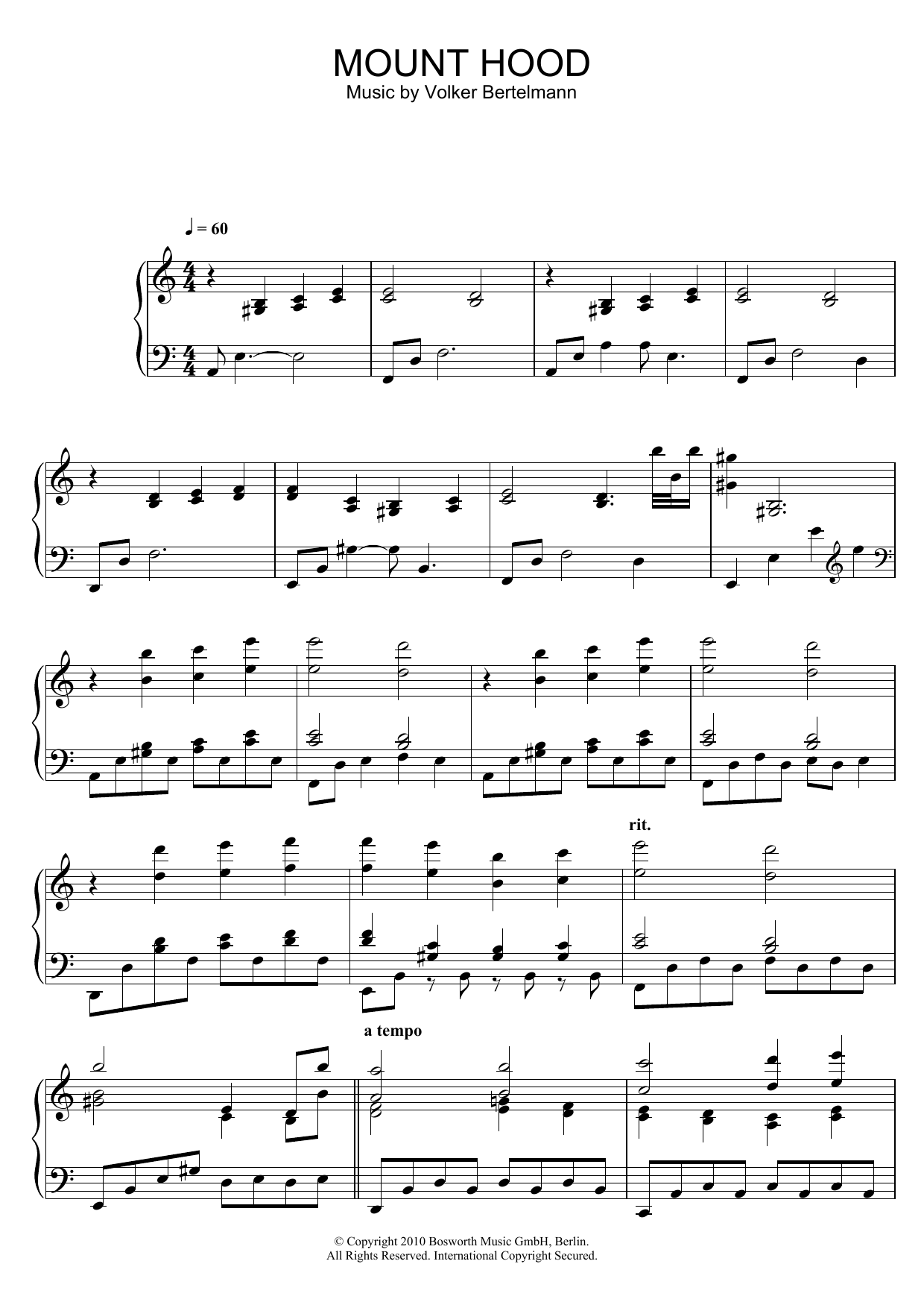 Download or print Hauschka Mount Hood sheet music, chords and digital score arranged for Piano Solo. This Classical score includes 3 page(s).