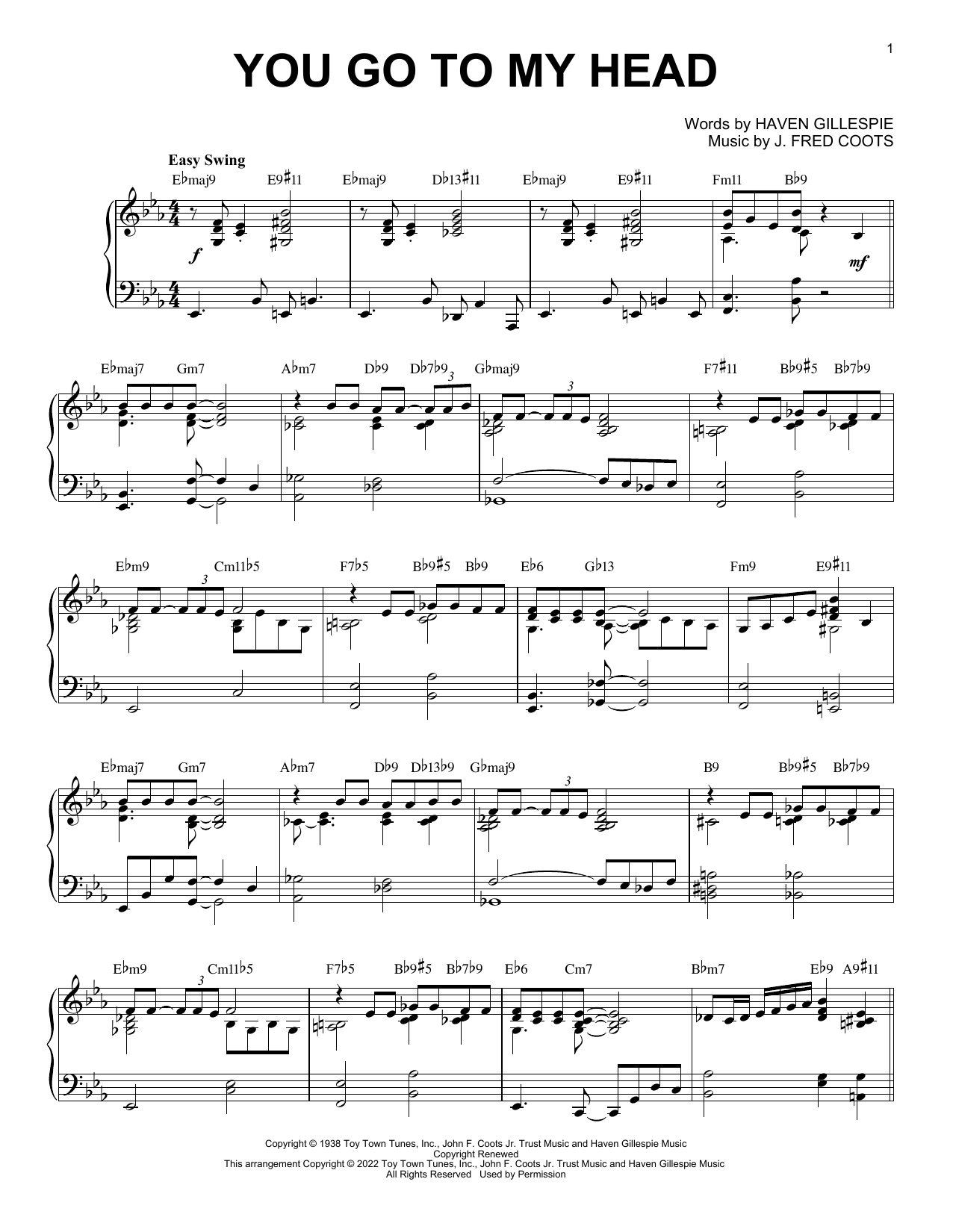 Download or print Haven Gillespie and J. Fred Coots You Go To My Head [Jazz version] (arr. Brent Edstrom) sheet music, chords and digital score arranged for Piano Solo. This Jazz score includes 3 page(s).