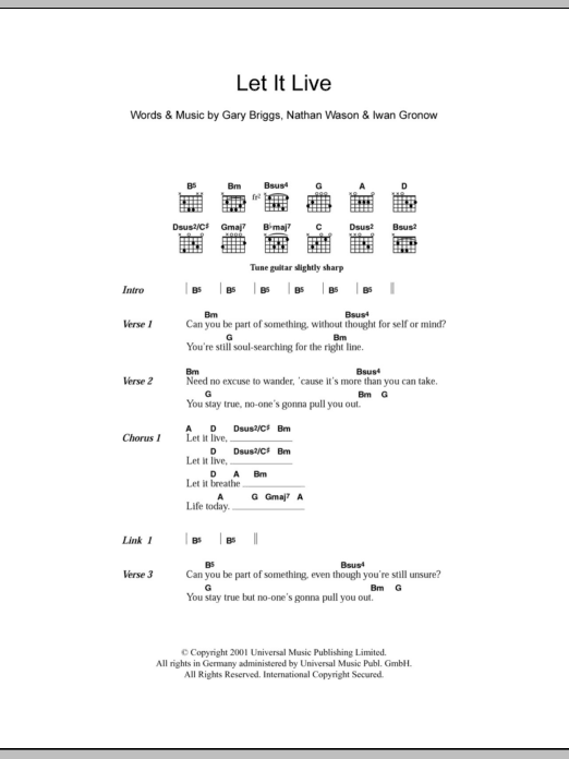 Download or print Haven Let It Live sheet music, chords and digital score arranged for Guitar Chords/Lyrics. This Rock score includes 2 page(s).