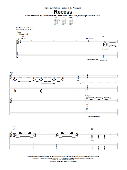 Download or print Hawk Nelson Recess sheet music, chords and digital score arranged for Guitar Tab. This Christian score includes 3 page(s).