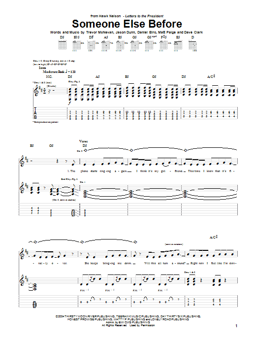 Download or print Hawk Nelson Someone Else Before sheet music, chords and digital score arranged for Guitar Tab. This Christian score includes 9 page(s).