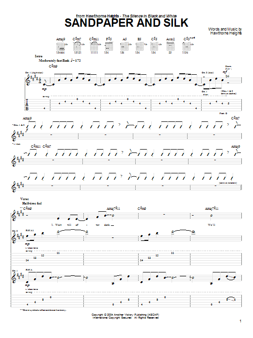 Download or print Hawthorne Heights Sandpaper And Silk sheet music, chords and digital score arranged for Guitar Tab. This Pop score includes 6 page(s).