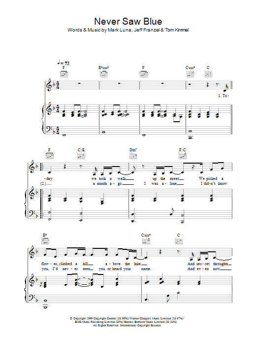 Download or print Hayley Westenra Never Saw Blue sheet music, chords and digital score arranged for Piano, Vocal & Guitar Chords. This Pop score includes 4 page(s).