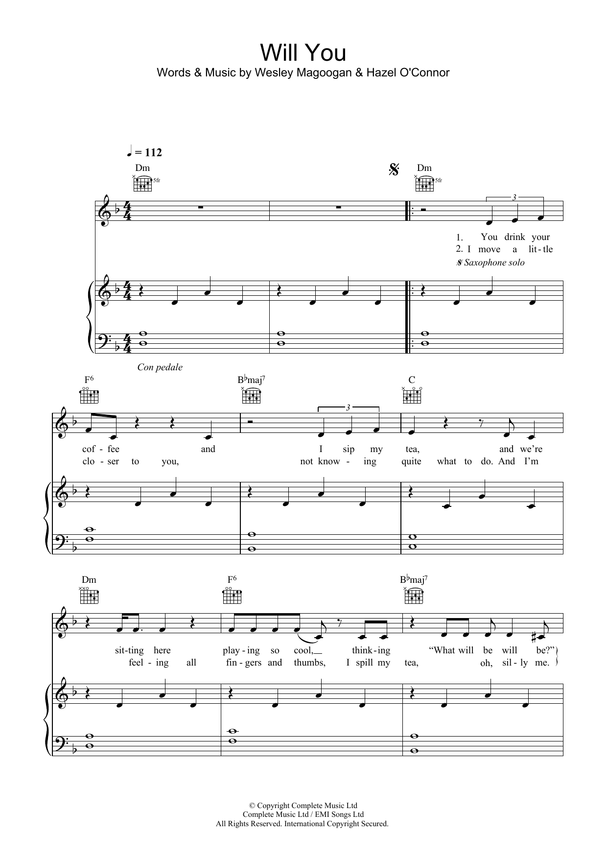 Download or print Hazel O'Connor Will You sheet music, chords and digital score arranged for Lead Sheet / Fake Book. This Pop score includes 3 page(s).