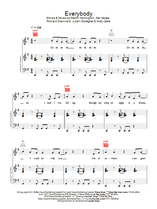 Download or print Hear'Say Everybody sheet music, chords and digital score arranged for Piano, Vocal & Guitar Chords. This Pop score includes 7 page(s).
