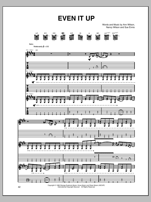 Download or print Heart Even It Up sheet music, chords and digital score arranged for Guitar Tab. This Pop score includes 14 page(s).