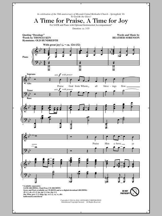 Download or print Heather Sorenson A Time For Praise, A Time For Joy sheet music, chords and digital score arranged for SATB Choir. This Sacred score includes 8 page(s).