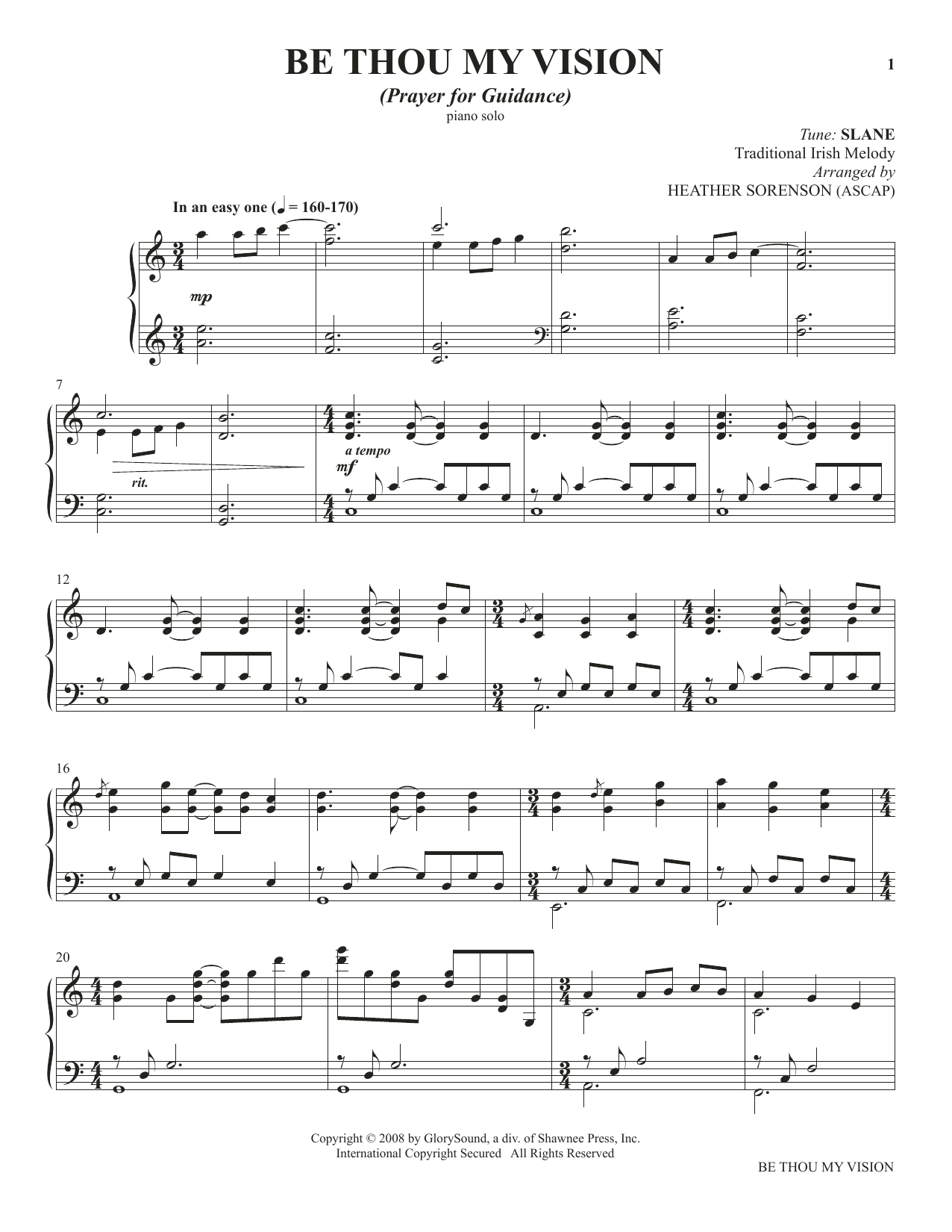 Download or print Heather Sorenson Be Thou My Vision (from The Prayer Project) sheet music, chords and digital score arranged for Piano Solo. This Collection score includes 7 page(s).