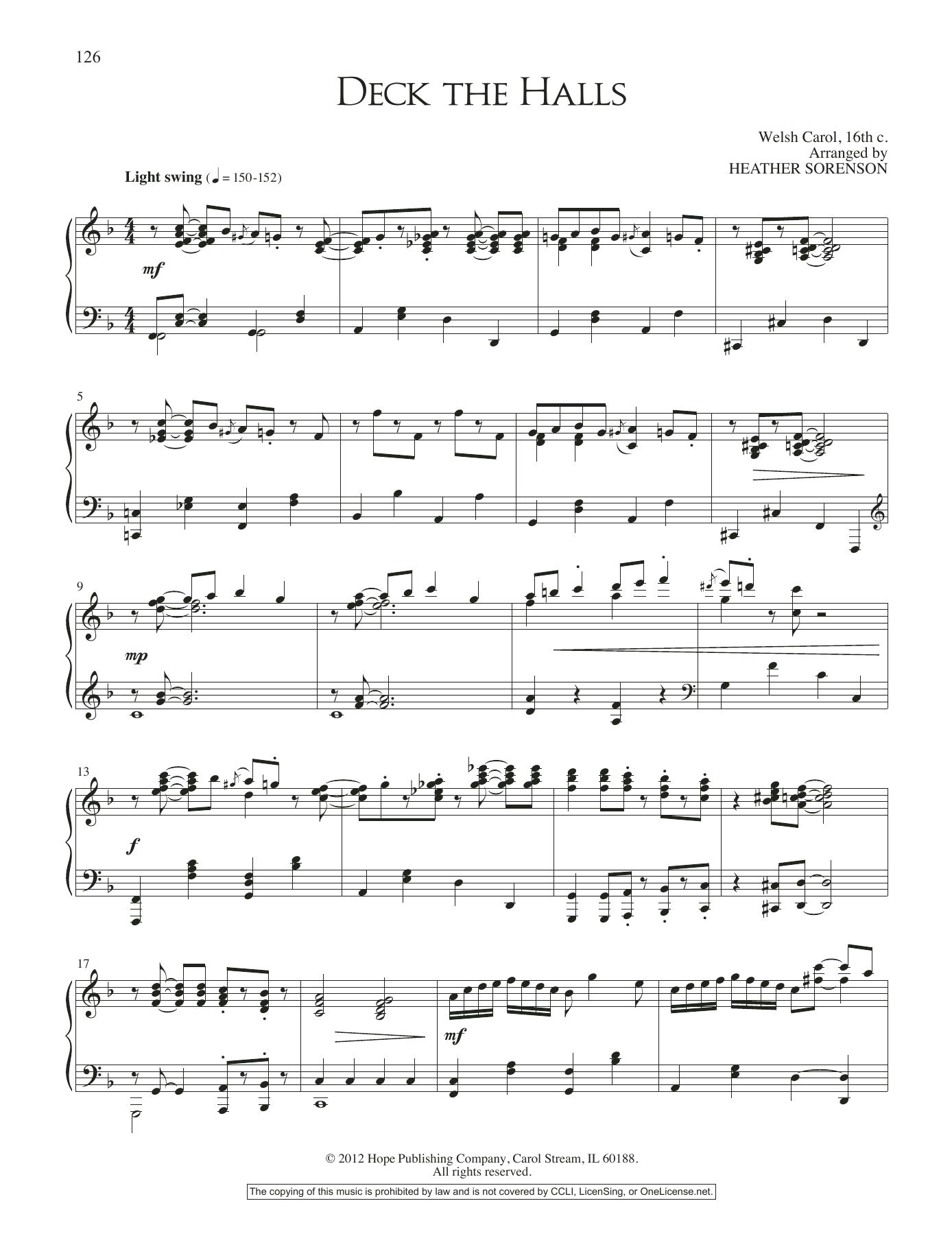 Download or print Heather Sorenson Deck the Halls sheet music, chords and digital score arranged for Piano Solo. This Hymn score includes 5 page(s).