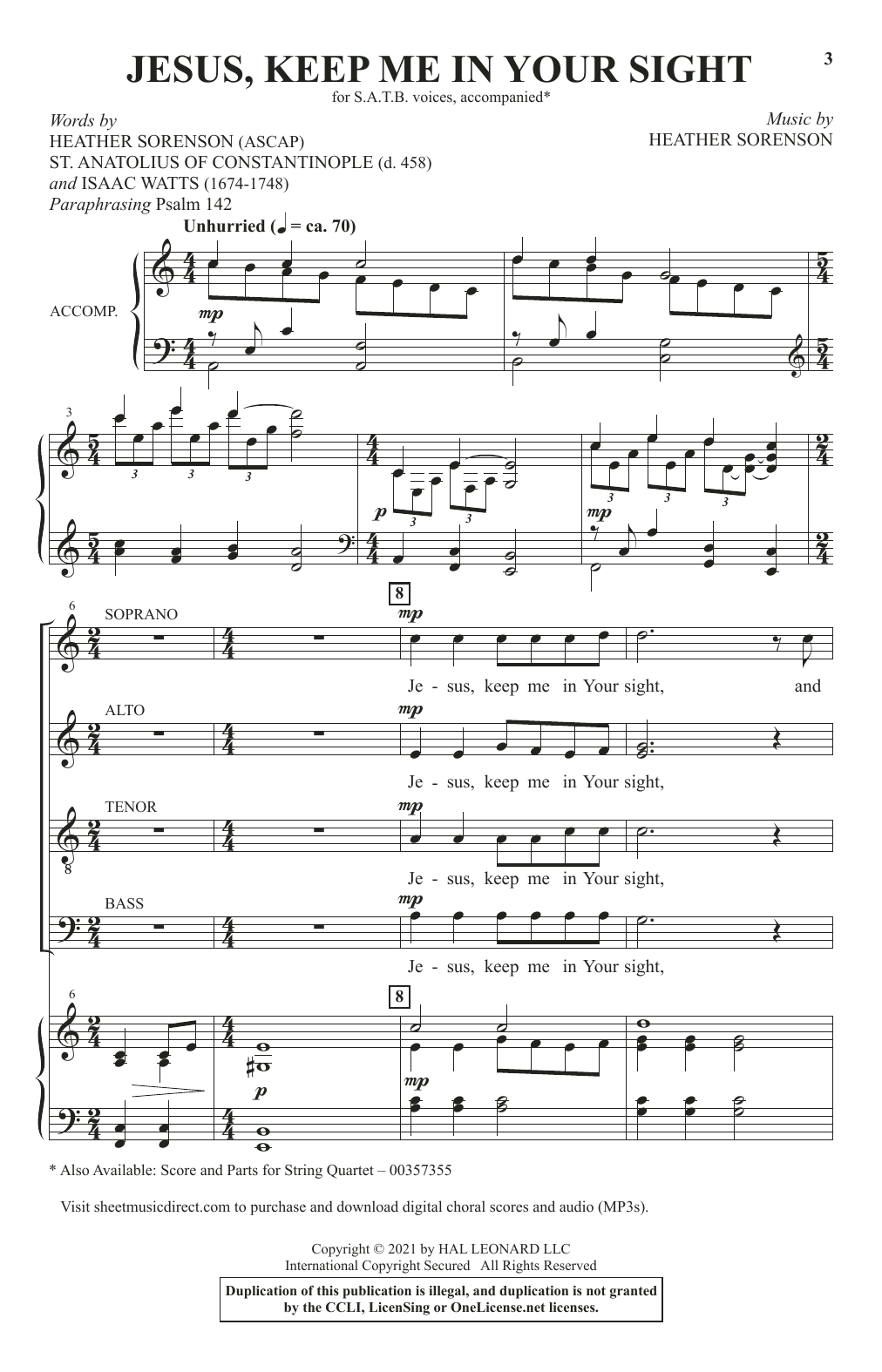 Download or print Heather Sorenson Jesus, Keep Me In Your Sight sheet music, chords and digital score arranged for SATB Choir. This Sacred score includes 12 page(s).