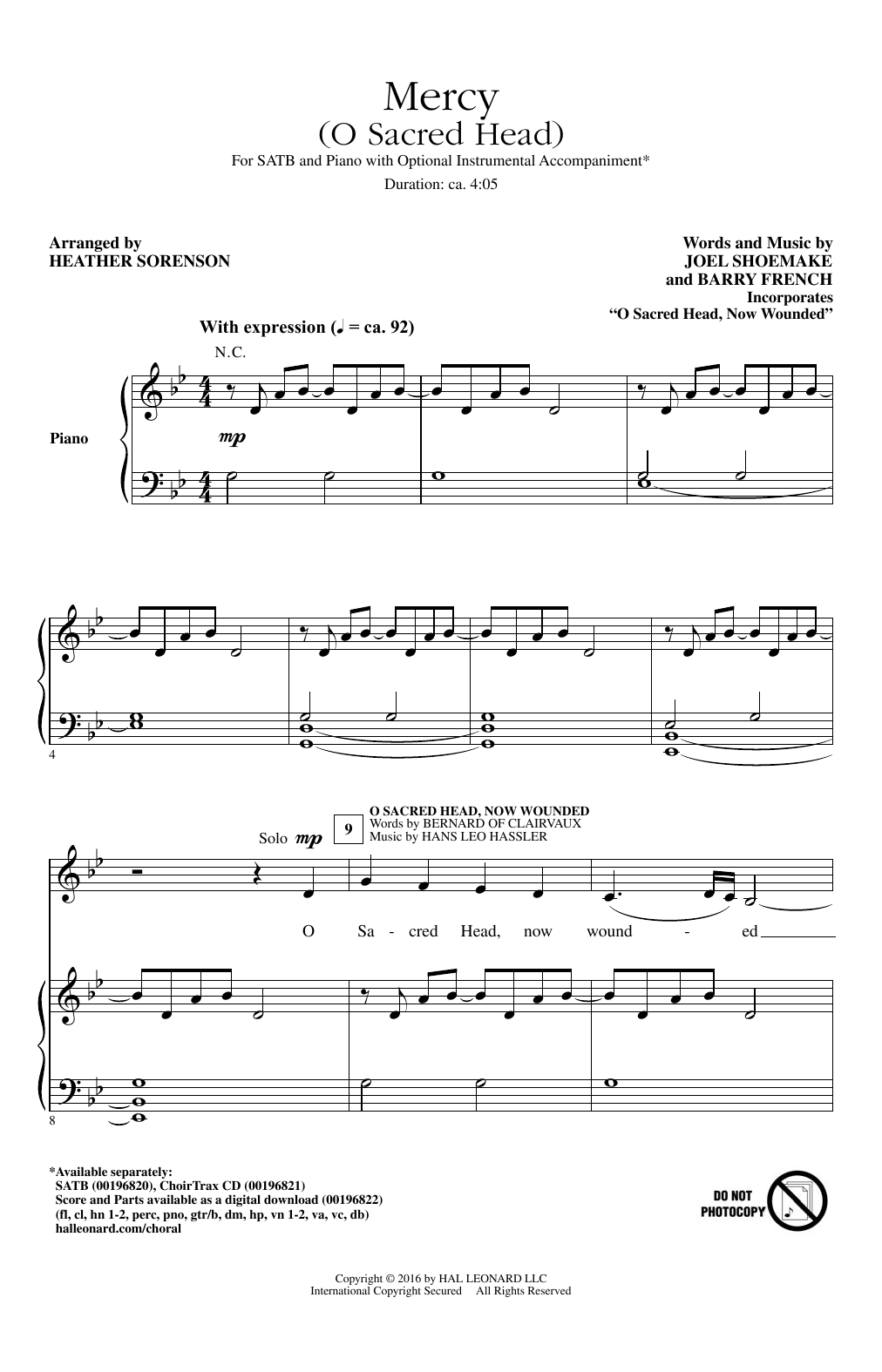 Download or print Heather Sorenson Mercy (O Sacred Head) sheet music, chords and digital score arranged for SATB Choir. This Sacred score includes 13 page(s).