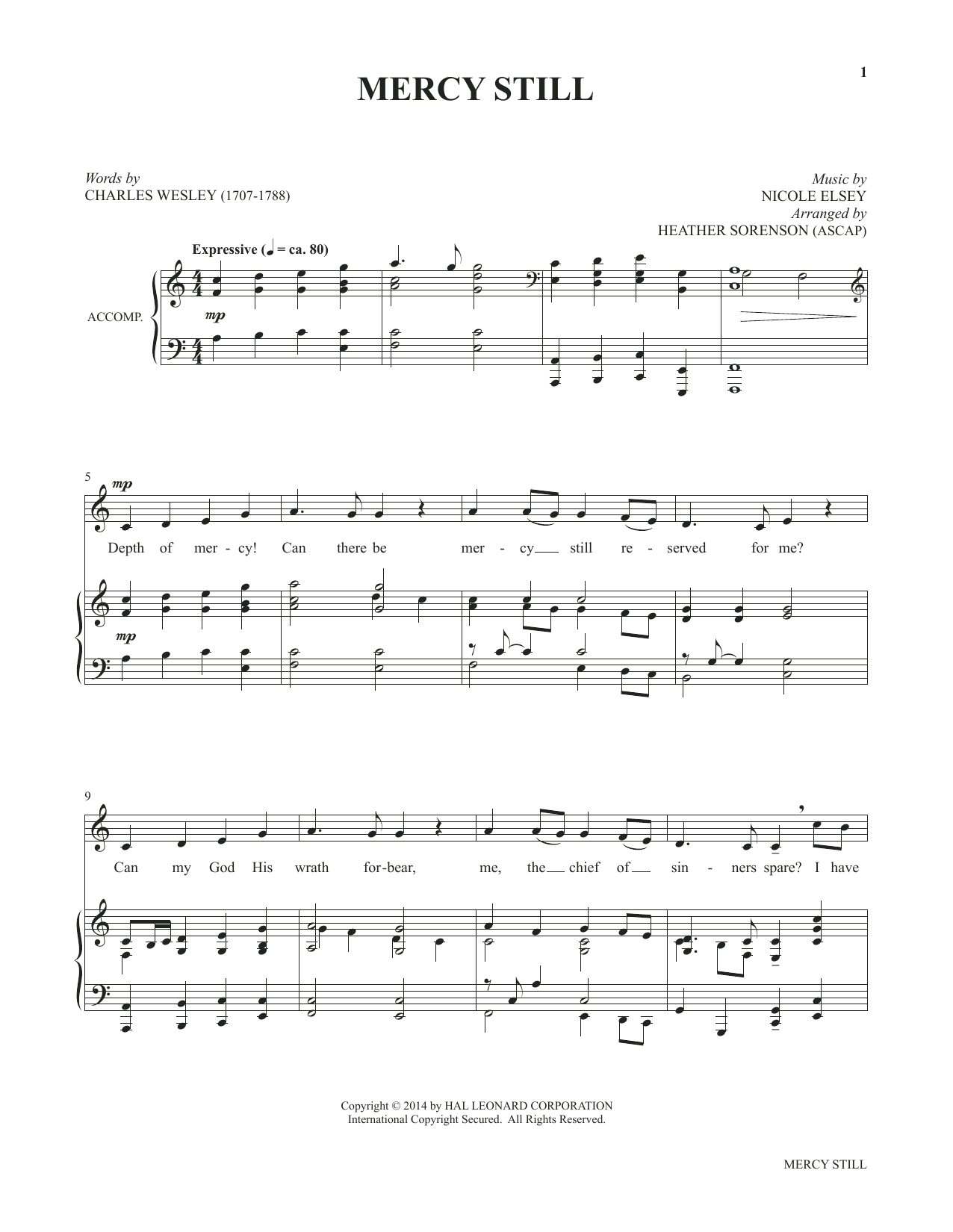Download or print Heather Sorenson Mercy Still (from My Alleluia: Vocal Solos for Worship) sheet music, chords and digital score arranged for Piano & Vocal. This Sacred score includes 5 page(s).