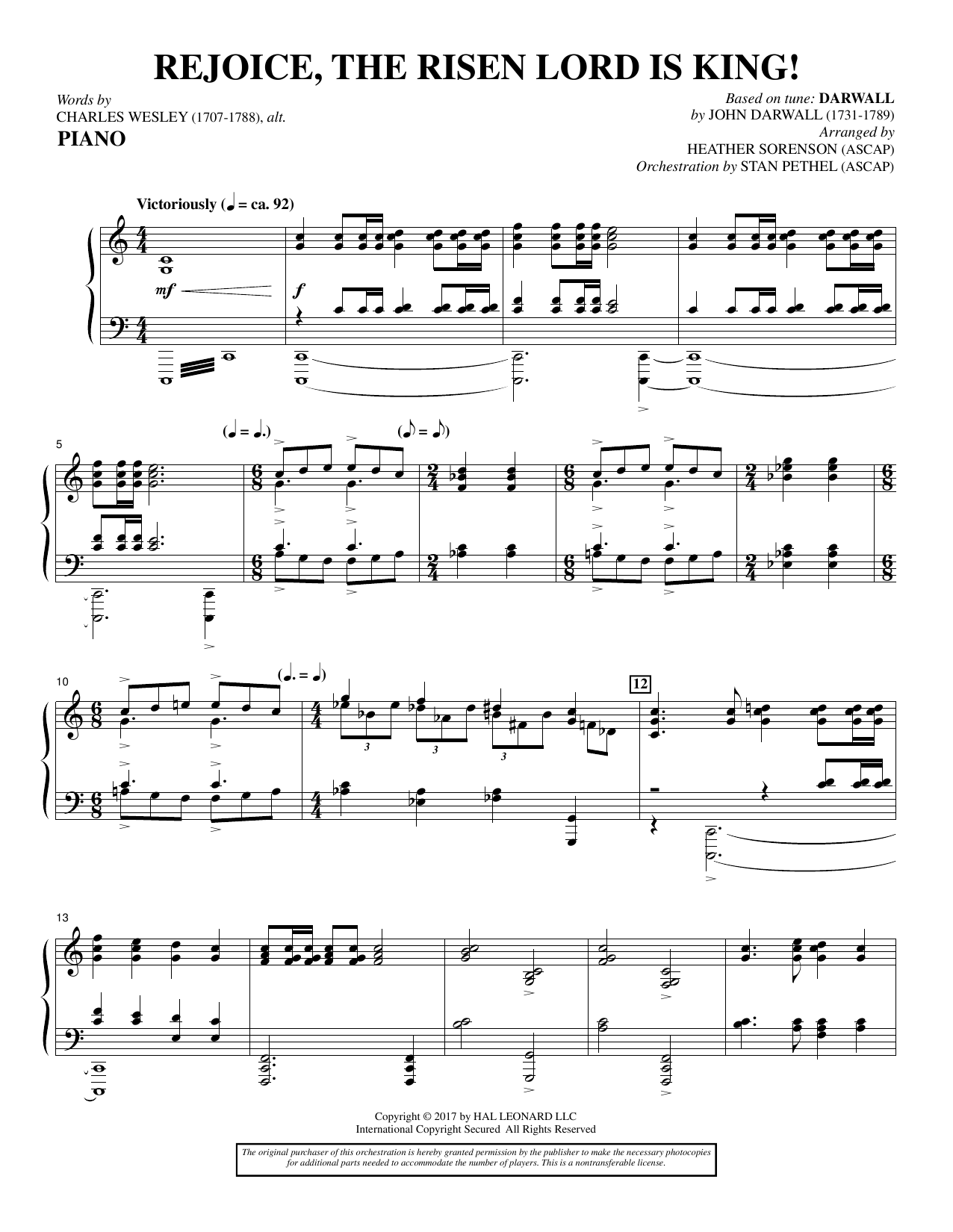 Download or print Heather Sorenson Rejoice, the Risen Lord Is King! - Piano sheet music, chords and digital score arranged for Choir Instrumental Pak. This Easter score includes 5 page(s).