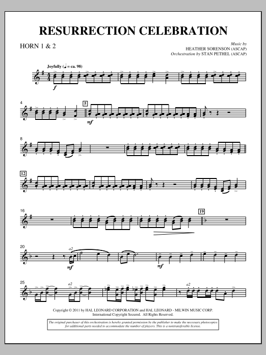 Download or print Heather Sorenson Resurrection Celebration - F Horn 1,2 sheet music, chords and digital score arranged for Choir Instrumental Pak. This Easter score includes 2 page(s).