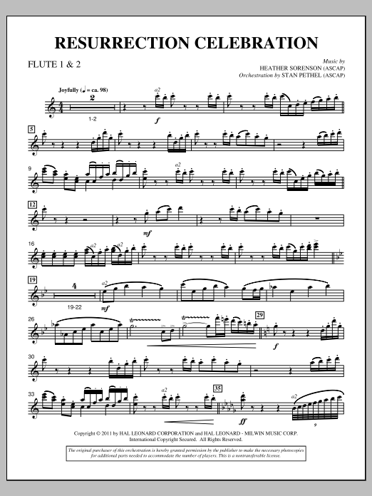 Download or print Heather Sorenson Resurrection Celebration - Flute 1 & 2 sheet music, chords and digital score arranged for Choir Instrumental Pak. This Easter score includes 2 page(s).