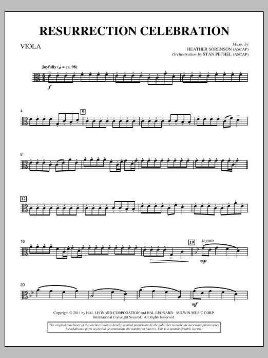 Download or print Heather Sorenson Resurrection Celebration - Viola sheet music, chords and digital score arranged for Choir Instrumental Pak. This Easter score includes 3 page(s).