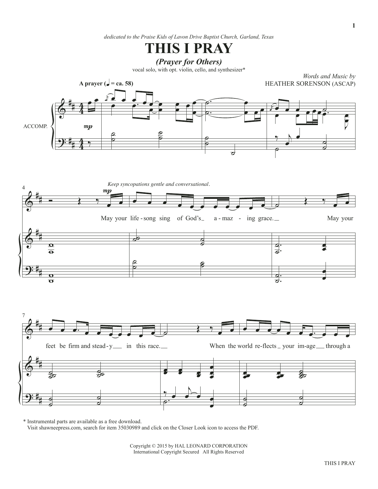Download or print Heather Sorenson This I Pray (from The Prayer Project) sheet music, chords and digital score arranged for Piano & Vocal. This Sacred score includes 6 page(s).