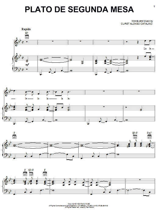 Download or print Hector Lavoe Plato De Segunda Mesa sheet music, chords and digital score arranged for Piano, Vocal & Guitar Chords (Right-Hand Melody). This Latin score includes 11 page(s).