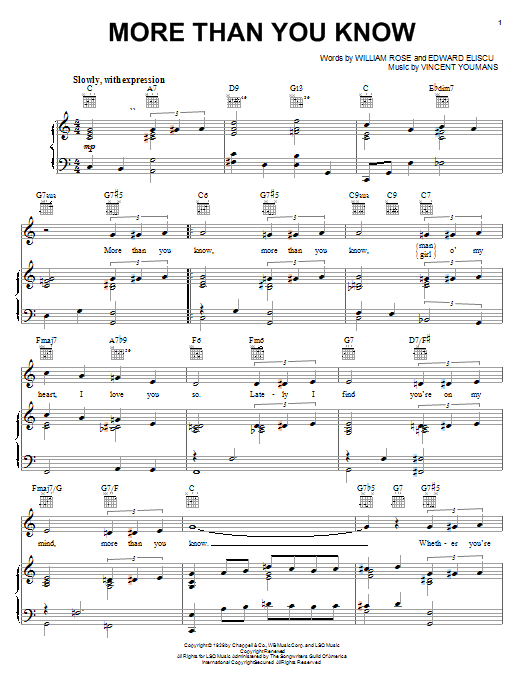 Download or print Helen Morgan More Than You Know sheet music, chords and digital score arranged for Real Book – Melody & Chords – C Instruments. This Jazz score includes 1 page(s).