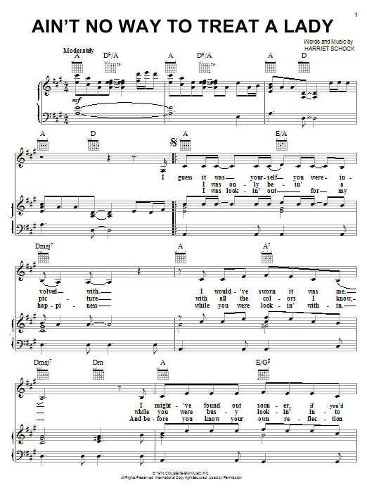 Download or print Helen Reddy Ain't No Way To Treat A Lady sheet music, chords and digital score arranged for Piano, Vocal & Guitar Chords (Right-Hand Melody). This Pop score includes 4 page(s).