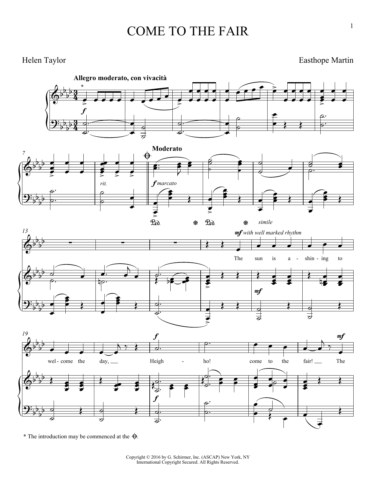 Download or print Helen Taylor Come To The Fair sheet music, chords and digital score arranged for Piano & Vocal. This Classical score includes 7 page(s).
