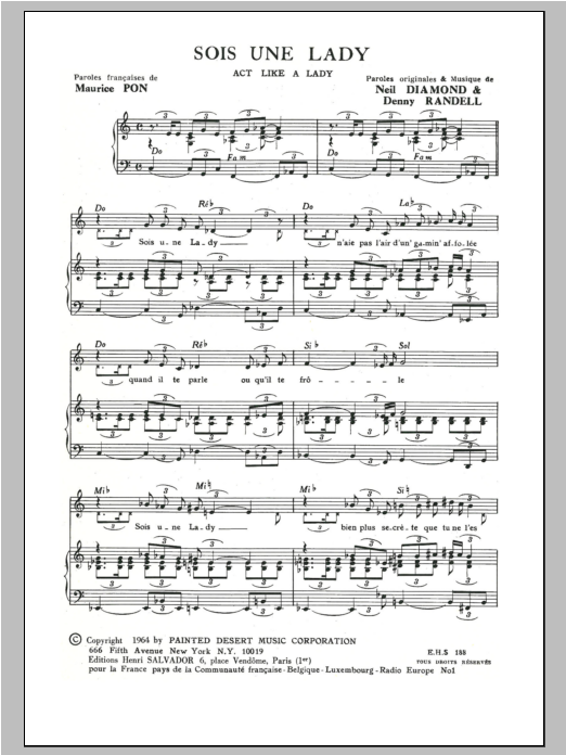Download or print Henri Salvador Act Like A Lady (Sois Une Lady) sheet music, chords and digital score arranged for Piano & Vocal. This Pop score includes 3 page(s).