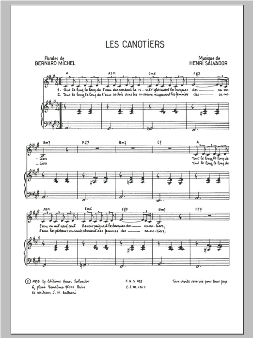 Download or print Henri Salvador Canotiers sheet music, chords and digital score arranged for Piano & Vocal. This Pop score includes 3 page(s).