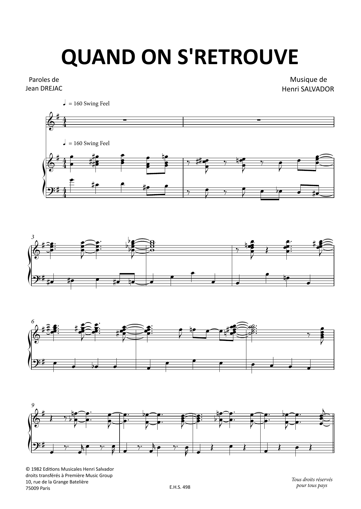 Download or print Henri Salvador Quand On Se Retrouve sheet music, chords and digital score arranged for Piano & Vocal. This Pop score includes 6 page(s).