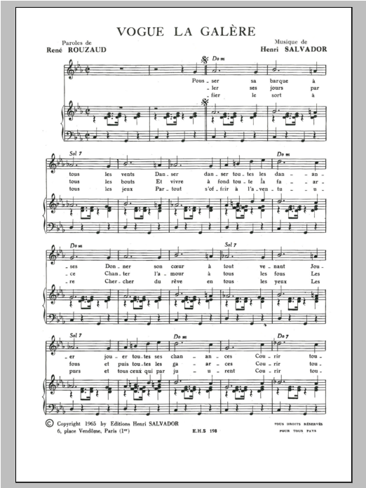 Download or print Henri Salvador Vogue La Galere sheet music, chords and digital score arranged for Piano & Vocal. This Pop score includes 2 page(s).