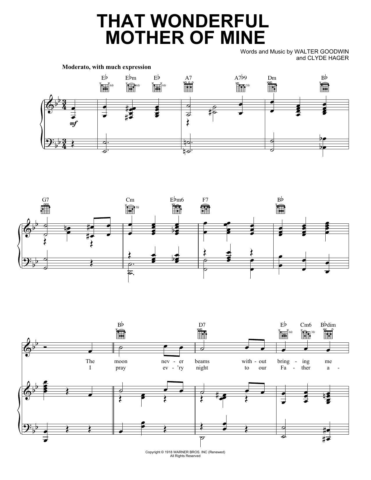 Download or print Henry Burr That Wonderful Mother Of Mine sheet music, chords and digital score arranged for Piano, Vocal & Guitar Chords (Right-Hand Melody). This Country score includes 5 page(s).