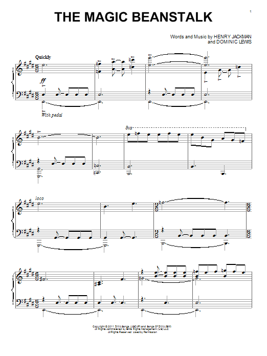 Download or print Henry Jackman The Magic Beanstalk sheet music, chords and digital score arranged for Piano Solo. This Children score includes 3 page(s).
