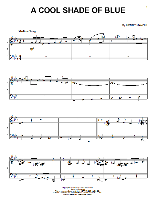 Download or print Henry Mancini A Cool Shade Of Blue sheet music, chords and digital score arranged for Piano Solo. This Jazz score includes 3 page(s).