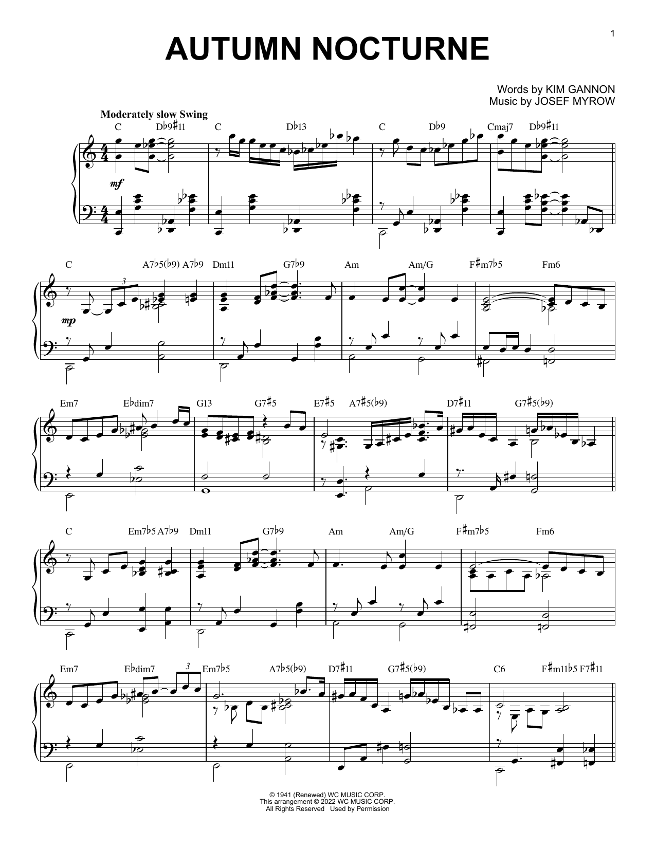 Download or print Henry Mancini Autumn Nocturne [Jazz version] (arr. Brent Edstrom) sheet music, chords and digital score arranged for Piano Solo. This Jazz score includes 4 page(s).