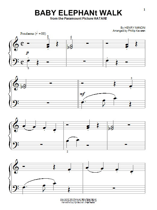 Quick facts Baby Elephant Walk (arr. Phillip Keveren) about digital sheet music