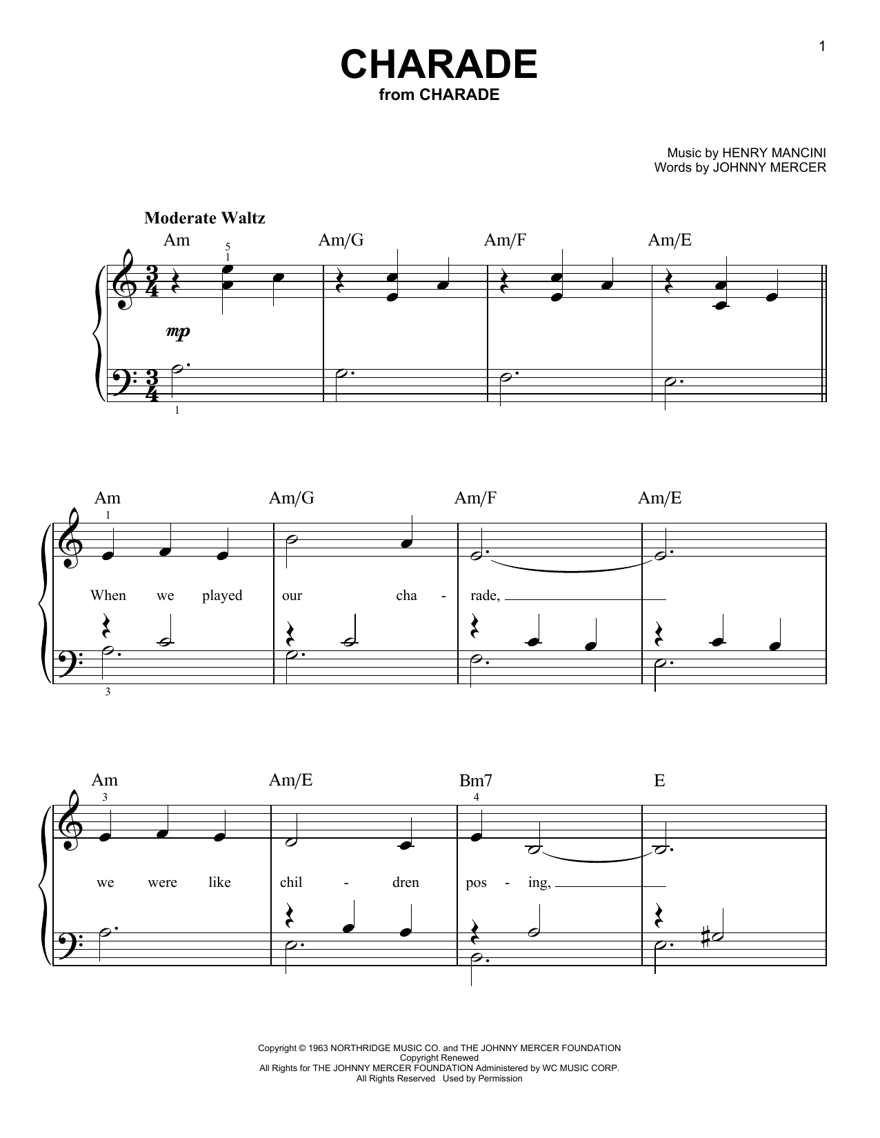 Download or print Henry Mancini Charade sheet music, chords and digital score arranged for Violin Solo. This Jazz score includes 1 page(s).