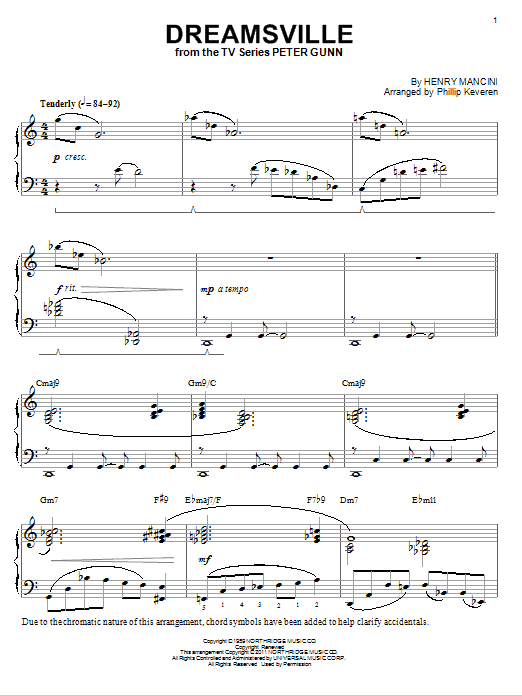 Download or print Henry Mancini Dreamsville (arr. Phillip Keveren) sheet music, chords and digital score arranged for Piano Solo. This Jazz score includes 3 page(s).