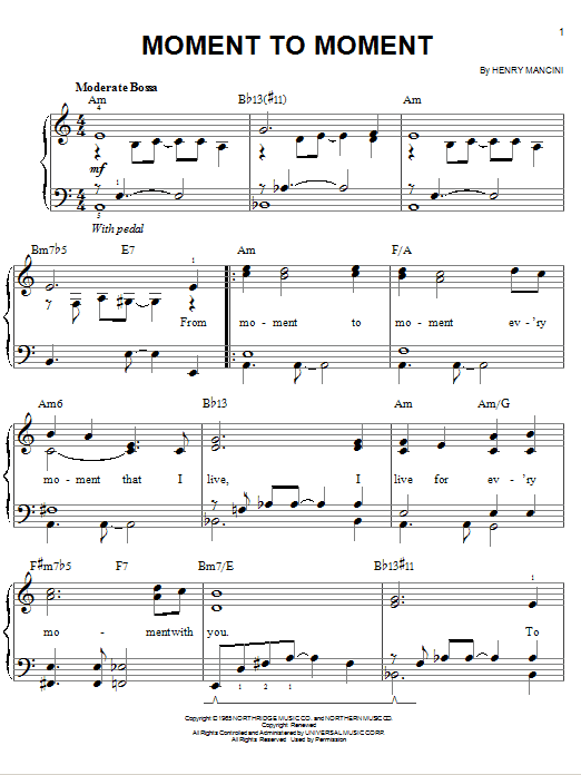 Download or print Henry Mancini Moment To Moment sheet music, chords and digital score arranged for Easy Piano. This Pop score includes 4 page(s).