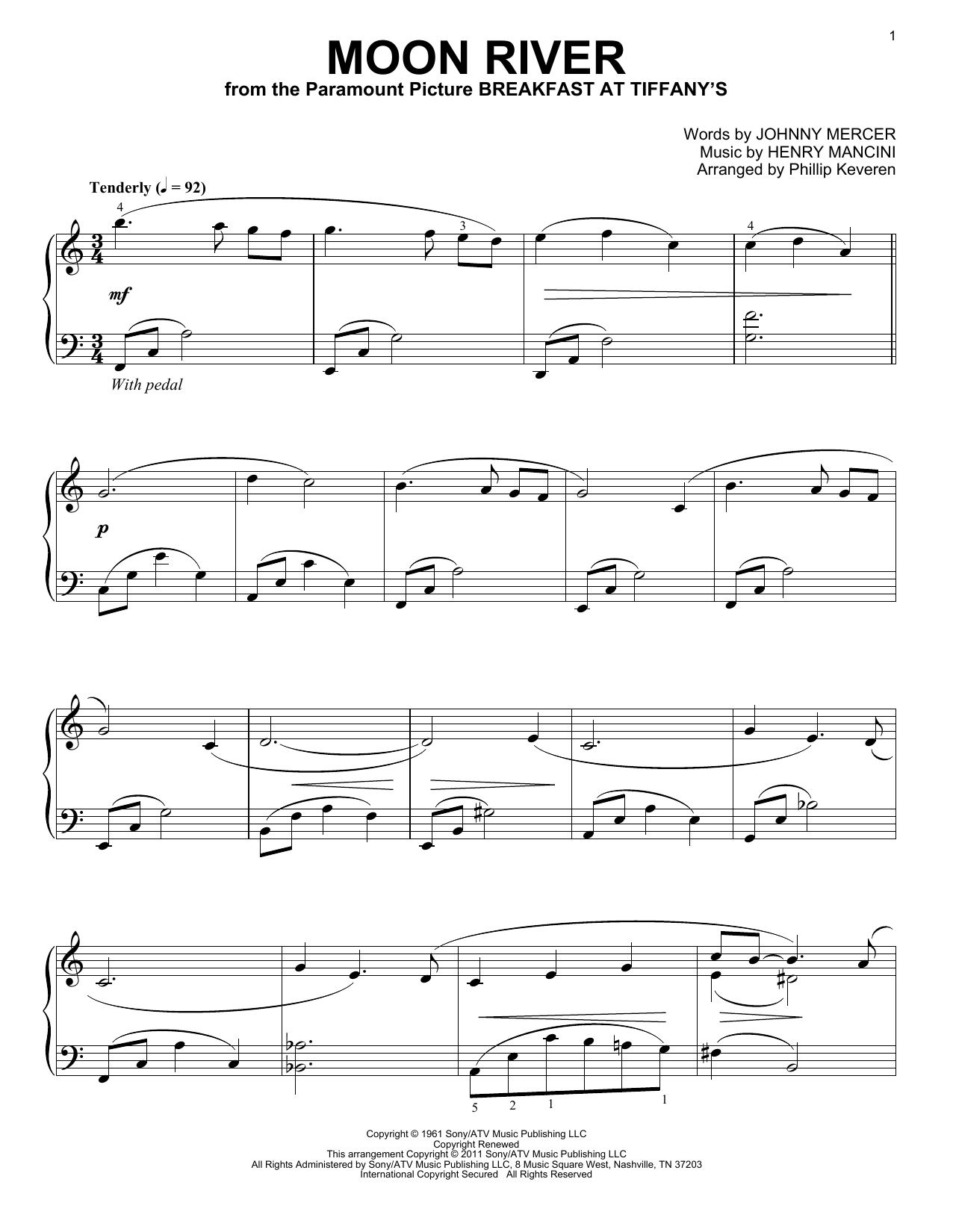 Quick facts Moon River (arr. Phillip Keveren) about digital sheet music