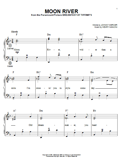 Download or print Henry Mancini Moon River sheet music, chords and digital score arranged for Trumpet Duet. This Jazz score includes 2 page(s).
