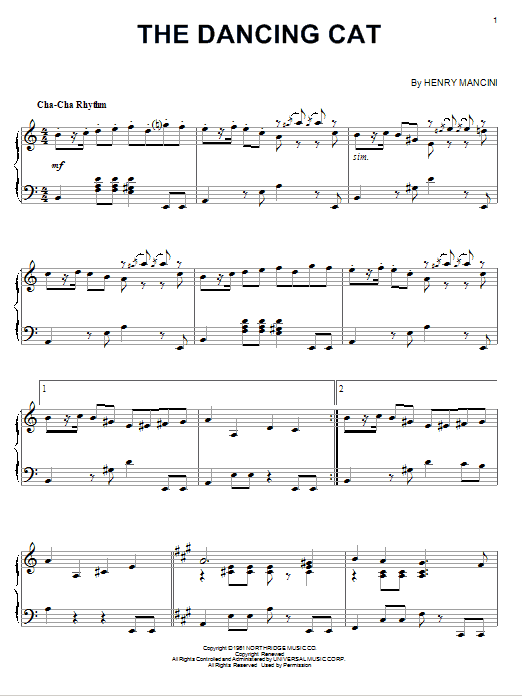 Download or print Henry Mancini The Dancing Cat sheet music, chords and digital score arranged for Easy Piano. This Pop score includes 4 page(s).